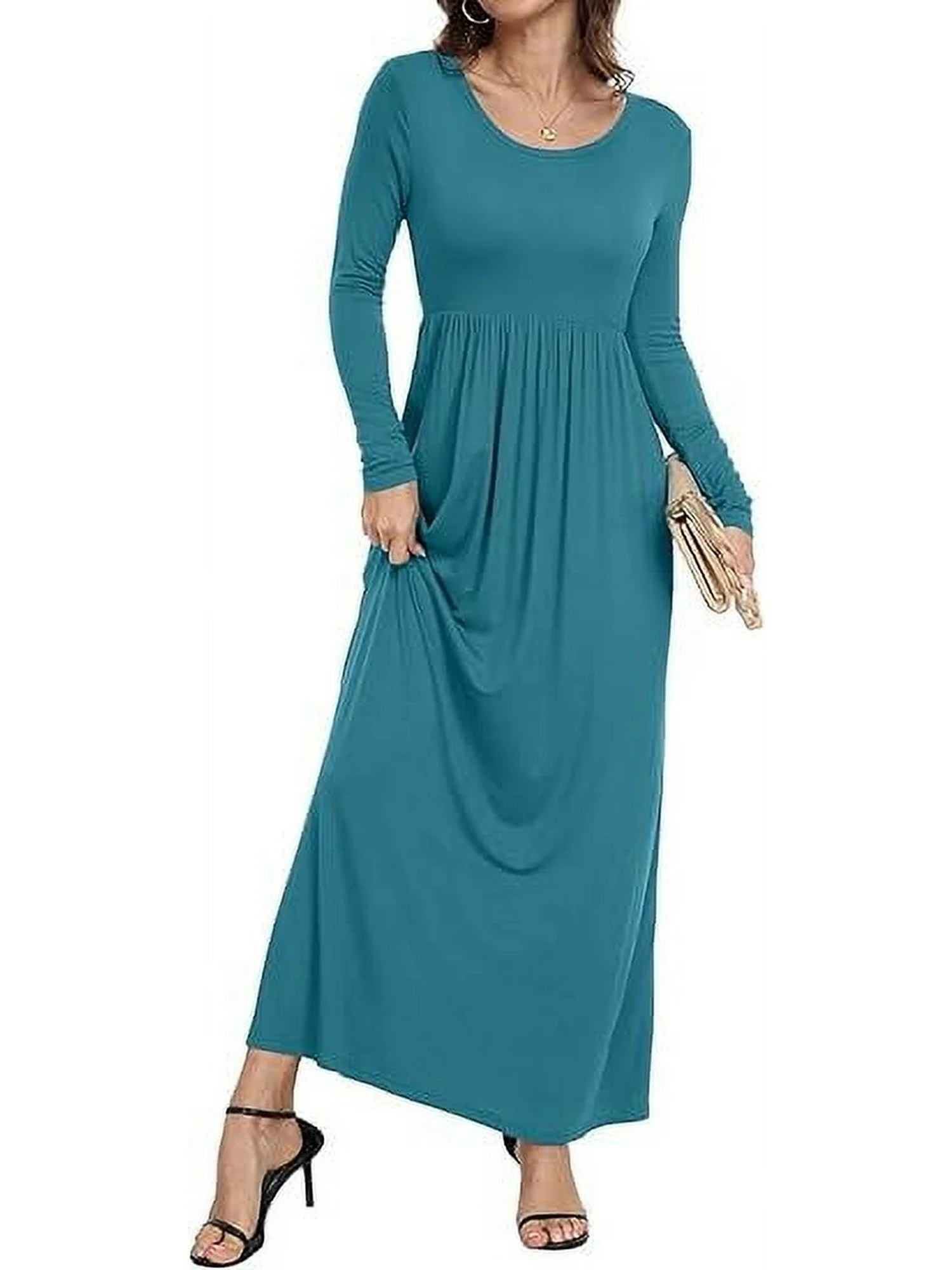 Aiyino Women's Maxi Dresses Long Sleeve Casual Long Dresses Loose with Pockets